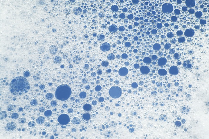 Bubble bath contains foaming surfactants. These are compounds that lower the surface tension between two liquids. What this basically means is that when the bubble bath meets the water and is hit by the force of more water filling the tub, bubbles are formed. Scienceline.org says ‘A bubble is born when two layers of soap molecules trap a layer of water molecules between them, creating a molecular sandwich.’